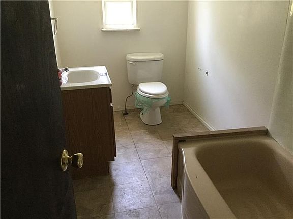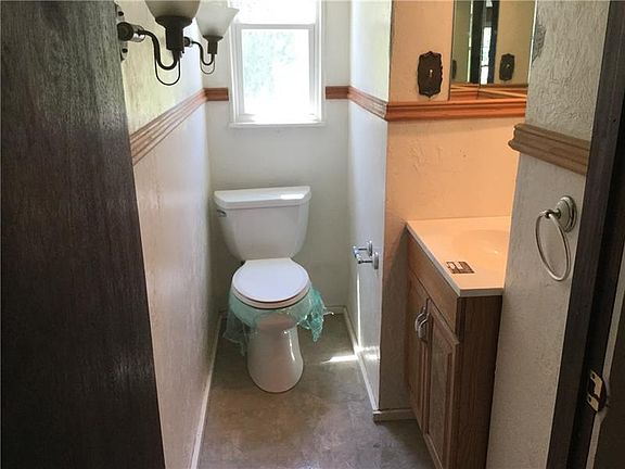 House is located in a quiet neighborhood. Large living room with a log burning fireplace and a pine wood paneled wall. This 2 story ,bath and a half,4 bedroom house has a lot of potential. 2 bedrooms located on the main floor. Dining area is off of the kitchen. Powder room on the main level and full bath on the second level with 2 additional bedrooms.. The house has newer windows .There is a large unfinished basement with the potential for a family game room of large shop for the crafts person or hobbyist.Bring your ideas and visit the property.