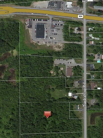 5.9 Acre level wooded flag shaped building lot on Tuckahoe Road south of Route 104. Frontage at road 160'. Lot widens to 360' about 155' from road. Lot Depth 753' from road. Lot width at rear 380'. All utilities at road. Excellent residential or development opportunity.