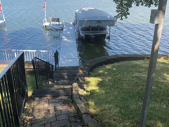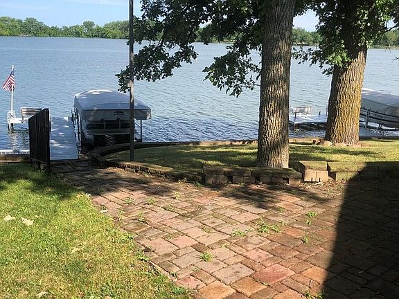 What a beautiful shaded lake front lot! This seasonal cabin has everything you need to enjoy the lake. Nice spacious brick patio, open living area, windows all around a sun porch looking over the lake. Includes appliances, furnishings, a dock and a pontoon complete with lift/lift cover. One car detached garage, fenced yard. Don't delay if you've been waiting for your own lake place! Enjoy a front row seat to July 4th fireworks right from your brick patio.