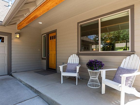 Located in Barton Crossing, this custom home on a charming cul-de-sac offers a thoughtful design throughout. The Great Room features vaulted ceilings, hardwood floors, gas fireplace and abundant windows. The Chef's kitchen has an oversized island, walk-in pantry, and dining with access to the very private backyard and flagstone patio, perfect for play and entertaining. Main level includes Master Suite with walk-in closet, dual vanity, and patio access. Additional bedroom has slider which opens to the backyard. Spacious upstairs bonus room adjoins Jr. Master Suite with private deck. Relaxing bath with dual vanity and soaking tub. Cascade mt. views from upstairs! Home backs up to 37-acre Rockridge Park, with 9-hole disc golf, bike skills courses, paved and natural paths, skatepark, playground, and natural space. Adjacent to walking path and garden lot. Close to shopping, Pine Nursery Park and great schools.