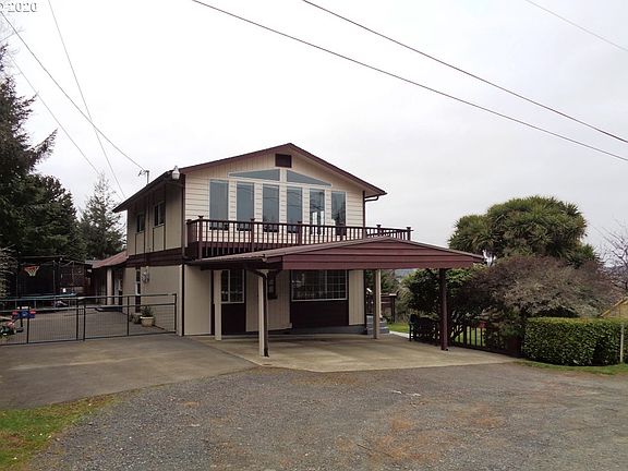 Beautiful long time family home. Views of Coos Bay from on top of the hill. 3 bedrooms & 2 baths on the main level, along with a family room and a den. Upstairs is an 816 Sq. Ft. master suite with vaulted ceilings, large living room, master bath. Expansive views form upper and lower decks, 2 car attached garage, 2 car attached carport, RV carport, large meticulous yard and end of the road privacy. Clean septic inspection!