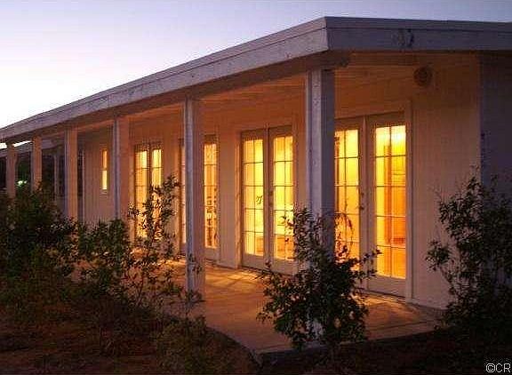 Recharge your batteries with a sweet piece of heaven in South Joshua Tree. Picturesque renovated 2BED/1BA home with detached Studio/Office sits invitingly on 5 peaceful acres. Great curb appeal. A wall of French doors surrounds the home to bring Nature~~~s beauty inside. The sit-and-talk covered Veranda runs full length and is perfect for sunset cocktails. Updated Kitchen with everything new: slab Granite Counters, new Hardwood Cabinets, stainless appliances. High~~~end manufactured Wood floors throughout. Recessed lighting. Current paint colors. Dual paned Windows. Blinds. Bathroom Vanity with Granite Counter . Beautiful stone tile walk-in Shower. In-Door Laundry Hook ups. Central A/C and Heat. Patios. New and mature plants. Large attached covered Car port. Detached Bonus Room has beamed ceilings, A/C and Heat. Clean, good looking, with a preferred location in ~~~Monument Manor~~~, right outside the National Park. The village is nearby without sacrificing a sense of quiet seclusion. A beautiful place to relax, commune with Nature, and enjoy the great locale. In your own Joshua Tree get-away you can let Nature set the pace. Worth seeing quickly.