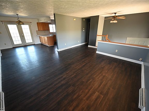 HUD home selling AS-IS. Split-level home with a walk-out finished basement on 2 acres. Upstairs consists of three bedrooms, a full bathroom, a living room, an eat-in kitchen, and a dining area. The full bathroom is a "Jack and Jill," which can be entered from the hallway or the master bedroom. The living room features a bay window. Off the dining area is a large deck that measures 46' x 12" with stairs to the backyard. Downstairs has a family room, laundry room, office, half bathroom, and a two-car attached garage. The detached garage was built in 2005 and measures 32' x 40'. The detached garage has a 100 amp breaker box, heat, air conditioning, water, and auto door openers. The shed/barn measures 12' x 24'.