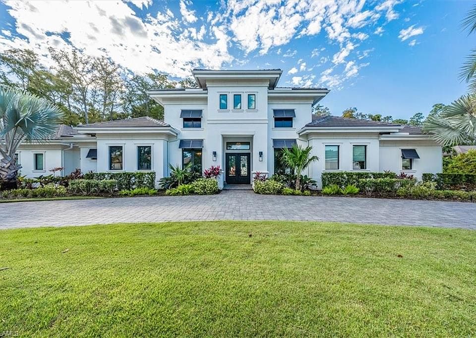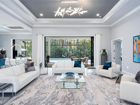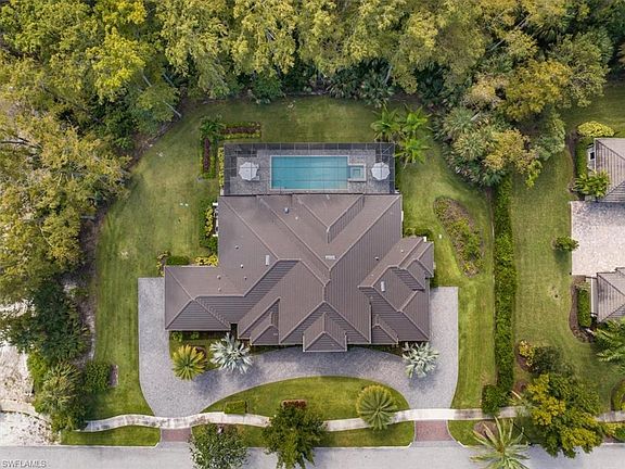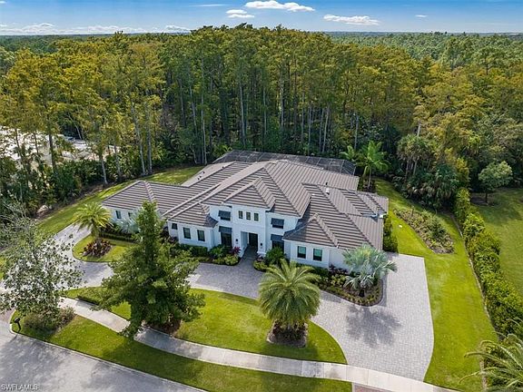 H12437 An unparalleled living experience awaits as you enter this impressive custom-built home offering synergistic indoor-outdoor living compliments of a wall of pocketed glass doors. Enriched w designer details throughout & situated on nearly an acre w 200’ of frontage, this home captivates.The welcoming lanai w saltwater pool & waterfall spa presents over 1800sf of enjoyment incl a covered area for relaxing & dining, electric fp & fully plumbed area for your own outdoor kitchen. Practically transparent, the panoramic cage screen merges the beauty of the lush landscaping & spacious green areas to make this private paradise an escape w tranquil views devoid of intrusive elements. The indoor open concept combines living rm, kitchen & dining room to create a harmonious center while the well-appointed kitchen made for entertaining boasts a spacious island, finely crafted cabinetry & hidden walk-in pantry.The large primary ste is an oasis w high ceilings, custom blt-ins, his/hers closets, spacious bath w double vanities, freestanding tub & oversized walk-in shower. The split floor plan offers privacy & 4-car garage (2/2’s) w/storage furthers the fusion of tranquility and practicality.