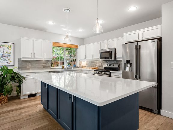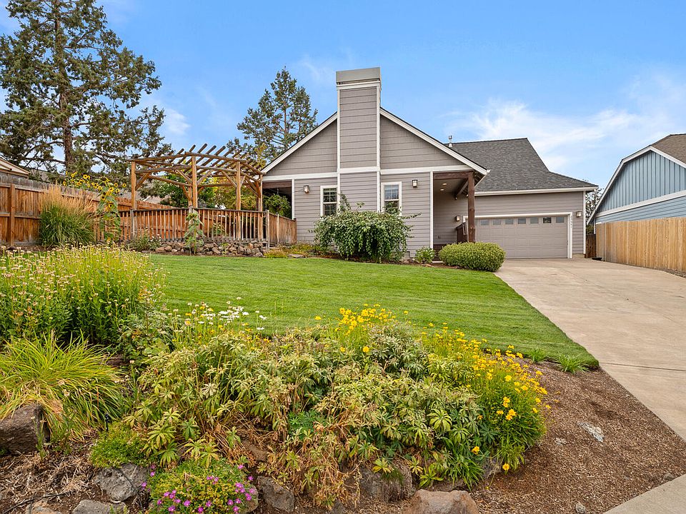 At the end of the cul de sac you'll find the home you've been waiting for! The great room invites you in with soaring ceilings, a cozy gas fireplace, and a spacious kitchen island—perfect for everyday living or entertaining. The smart floor plan features a main-level primary suite along with a second bedroom and full bath for convenience. Upstairs, two additional bedrooms and another full bath provide room for family, guests, or a home office. Step outside to your own French-inspired backyard retreat with a paver patio, a pergola, space for a firepit, and raised garden beds. Recent updates add peace of mind with a new roof and heat tape, new A/C and heat pump, fresh interior and exterior paint, upgraded electrical with an EV charger, and more. Follow the neighborhood path to enjoy 36-acre Rockridge Community Park with playgrounds, a skate park, bike skills course, disc golf, and trails. Lava Ridge Elementary and Sky View Middle are only a half mile or so away!