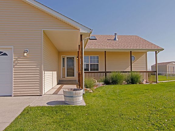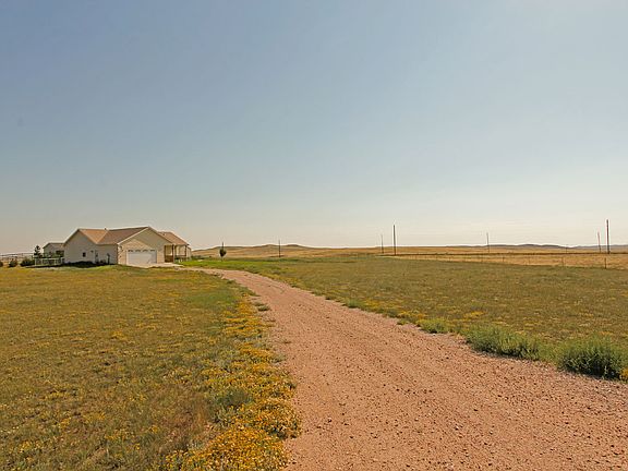 Country Living Close to Town 4 bedroom, 3 bath, 2 car garage on approximately 2 acres in Bison Crossing. New roof, newer metal siding, fresh paint and carpet, Central A/C, sprinkler system, fenced back yard with patio and front has covered porch. Open floor plan, vaulted ceilings, main floor master and main floor laundry. Gorgeous view of Cheyenne.