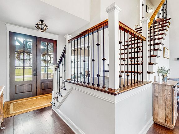 **PRICED $20K BELOW APPRAISAL** Just 3 years young, this beautiful walkout with 3 car garage in Oldham County's Brentwood community is turn-key & waiting for you! From the charming covered front porch, you'll enter into the foyer where hardwood floors greet you & flow from there throughout the first floor. Just off the foyer, you'll find the formal dining room with classic board & batten trim work. The two-story great room offers abundant natural light & space to relax with a stone gas fireplace flanked by built-in bookcases. Open to the great room, the spacious eat-in kitchen features timeless shaker cabinetry, tile backsplash with over-the-range pot filler, granite countertops, full suite of stainless appliances, center island with breakfast bar & a sunny dining area with access to the screened porch. Just off the kitchen, you'll find a mudroom-style garage entry with laundry room, half bath & a butler's pantry - tucked conveniently aside the dining room. The spacious primary suite features a double tray ceiling, en suite with granite-topped double vanity, soaking tub, large walk-in shower, marble tile floors & a walk-in closet. The upper level offers a spacious loft with hardwood floors - perfect for kid/teen hangout space, 3 spacious bedrooms & 2 full baths - one en suite, the other a shared Jack & Jill. The walk-out level is the perfect place to entertain with a spacious family room, large bar & game area, two additional bedrooms & a full bath. Enjoy the outdoors rain or shine from the upper-level screened porch, open-air deck or lower-level patio overlooking the fully wrought-iron fenced yard with irrigation system. Some additional special features include a gas line for the grill & a dog shower in the 3 car garage. Brentwood offers its residents a private pool with clubhouse & tennis courts.