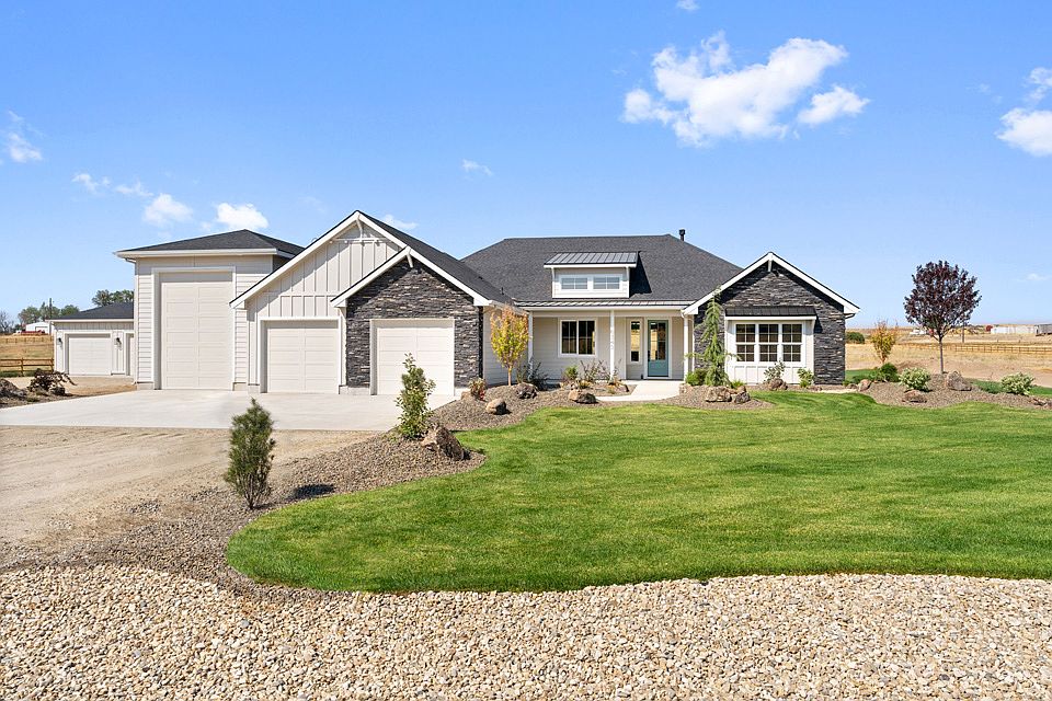 Bright and airy 3 Bedroom + Office/2 Bath on 4.33 acre lot in Triple H Estates just minutes north of Middleton in Gem County. The vaulted great room with beams & fireplace looks out onto 1 of 2 covered patios. Entertaining in the gourmet kitchen with a farm sink, island, & Bosch double ovens & cooktop and large pantry. Upgrades and designer touches abound with quartz counters throughout and extensive millwork. Retreat to the master suite and enjoy the dual vanities, walk in shower, freestanding tub and walk in closet. Enjoy the bonus/rec room with vaulted ceilings and access to the vaulted covered porch. The secondary bedrooms are large with walk in closets. Plenty of parking & hobby space with the attached 2 car garage & 48' RV Bay &detached 36x36 shop. Cows, Horses, and Chickens welcome! Close to BLM. Located 10 minutes to I-84 with a easy commute to Nampa/Boise or Ontario. Water rights and irrigation!