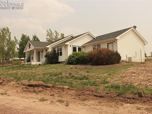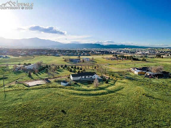 A private retreat property with mountain views, bringing peace from the sound of the city, and yet close proximity of 4 major shopping / dining areas all within 4 miles. How would you like to start off your day waking up to the calming peace of sipping the favored morning coffee on your own private deck while watching the birds joining flight with each morning sunrise. Then returning home after a long day at work to set and relax on a second private wood deck while watching the evening sun slowly melt behind the magnificent Pikes Peak mountains with the occasional herd of migrating antelope moving through your property all while unwinding with a favorite wine. This is the place, as it displays 2 newly remodeled bedrooms up stairs and 2 bedrooms down stairs close to a game room for the children and friends to enjoy sports and gaming. With 3 bathrooms, and laundry. A formal dining room with upper and lower living rooms. The kitchen with great options for storage is a quick step to the breakfast nook and easy access to a basement cellar /storage room. The backside entry attached 2 car garage will make easy access for bringing in the groceries. It has a large exterior storage shed limiting the need for the added expense of the storage unit rental. This home has everything needed to enjoy a private retreat in a large city. Custom Built Rancher on a 5 acre parcel. Located just off Marksheffel Rd and Stetson Hills Blvd. Beautiful mountain views of the Front Range and Pikes Peak. The home has a backup propane generator as well. Current owner moving due to a sudden life change. Well pump replaced was replaced in 2022. Property will be sold as-is.