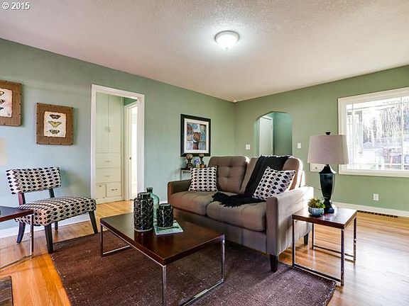 Well built home with beautifully refinished hardwood floors, wooden kitchen cabinets, freshly painted interior with new carpets in the bedrooms, double-paned windows. Cozy living room with curved archway, gas fireplace and formal dining room with bay window. Fenced backyard with wooden deck, garden beds ready for Spring planting. Big back yard!