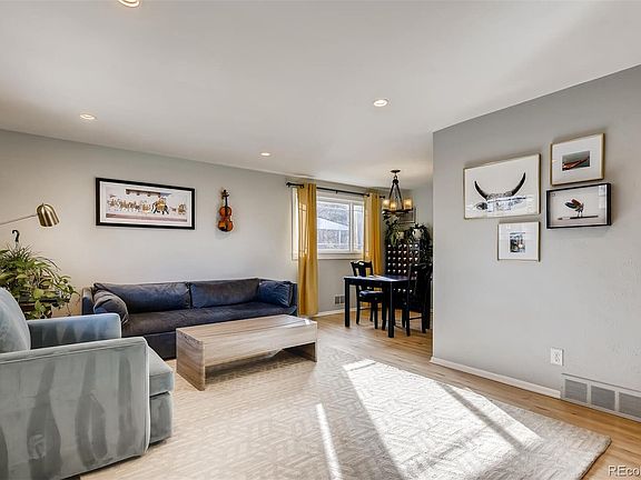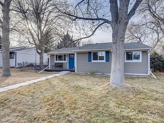 This move-in ready, light-filled, and remodeled ranch home exudes charm! Upon entering you will be greeted by a comfortable, large living room with gleaming hardwood floors and quality double pane windows that fill the space with an abundance of light. The dining room flows between the living room and kitchen and features the same beautiful hardwood floors. The spacious, remodeled kitchen showcases newer stainless-steel appliances, updated fixtures, and windows. The bathroom features dual sinks, quartz counters, and designer tile. 3 amply sized bedrooms also have the terrific hardwood floors, and newer double pane windows as well as newer ceiling fans. The fully windowed/enclosed sunroom/flex space is the perfect area for a family room, entertaining, an art studio or workout room. The centerpiece of this room is the stunning, mid-century modern, gas fireplace - Imagine relaxing around the fire! Possibilities also abound in the sizable back yard that boasts a sprinkler system (front and back), a gathering area, garden, and an enclosed area for pets and projects. Finally, a 2-car detached garage offers space for storage and a workshop! Located near parks, shopping/services, the light rail and downtown Littleton, this home has everything you are looking for!