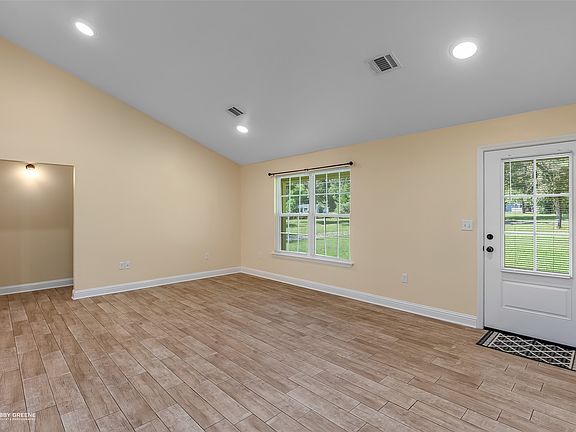 Very well-maintained 3-bedroom, 2-bathroom home located on a 2-acre lot! The spacious open floorplan is an entertainer's dream with the living space flowing into the kitchen and dining area. With high ceilings and plenty of natural light, the living room is open and airy. The kitchen comes complete with a center island for easy meal prep, stainless appliances, and granite counters. Wood-look tile throughout the entire home brings a touch of warmth and easy maintenance. The primary suite features an ensuite bath with dual sinks and an oversized tiled shower. The additional two bedrooms share a modern full bath giving privacy and convenience to guests or family. The real showstopper is the stunning property featuring mature trees and plenty of room to host gatherings, make a garden, or maybe even install a pool. A detached carport will keep your vehicles protected from the elements and a shed offers space for storage or yard equipment. Don't wait, schedule your tour today!