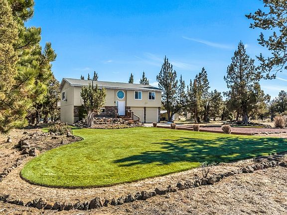 Peaceful, quiet and private small acreage property minutes to town with beautiful Cascade Mountain Views. Home features 3 bedrooms, 2.5 baths with an open living area & large finished basement/bonus room with a slider to the back yard. Large living room bay window frames the 3 Sisters. Enjoy stunning sunsets from your living room. Kitchen boasts generous counter space with SS appliances. Back Yard features manicured landscaping, balcony, Trex decking, hot tub hook up and fenced garden area. Recent interior upgrades include new windows, laminate flooring, carpet, paint and lighting. Exterior upgrades include a new roof w/ 50 year warranty, upper & lower decking, new garage doors, and exterior paint. Bring your horses and enjoy the close access to public lands and the sense of community that Cimmaron City offers. Plenty of room to build a shop and store all of your toys! See attached 3-D virtual tour to explore this home and property!