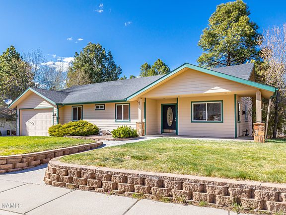Great home in the highly sought after neighborhood of Walnut Ridge! This home has so many dimensions: single family or multi-generational living. Vaulted living room with stone gas fireplace. The kitchen has Maple cabinets, solid slab granite, stainless appliances and kitchen sink. Primary bedroom is on the main level with French doors leading to covered composite deck. The primary en-suite has all the must haves: jetted tub, walk in shower and dual sinks. There are 2 additional bedrooms on the main level. Down stairs you will enjoy the massive bonus room complete with kitchen cabinets and sink. 2 additional bedrooms and full bath also with dual sinks. The backyard is perfect for those enjoyable Flagstaff evenings. Large shop and tons of storage.