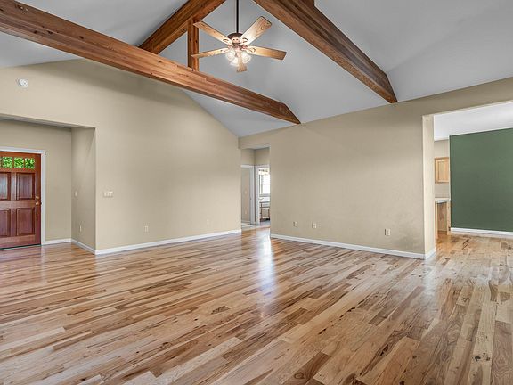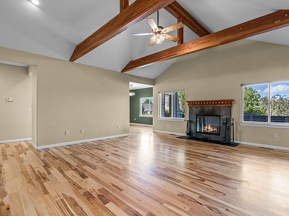 Welcome to Phoenix Park, a quiet neighborhood conveniently located near schools and Rockridge Park! This single-level home boasts high ceilings, stunning exposed wood beams, Hickory hardwood flooring, a gas-assist woodburning fireplace, and gorgeous views of the Cascade Mountains! The spacious kitchen features an island, 5-burner gas stove, and large pantry. Kitchen is open to dining room and flows to outdoor deck providing a lovely setting for relaxation and entertaining! Expansive Primary Suite has nice separation from other two bedrooms, offering privacy. It includes a jetted soaker tub, dual vanity, linen closet and walk-in closet. The property also features a three car garage with workbench, and it sits on a large .19 acre corner lot with mature trees and landscaping. This delightful home is clean, vacant, and ready for you to move in. Come see this property today, relax on the front porch swing, and start living the life you've dreamed of in Bend, Oregon!
