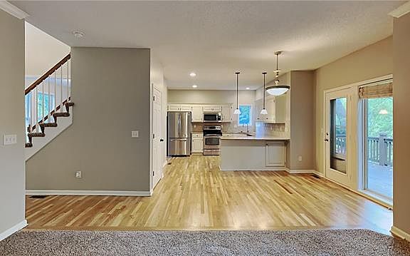 This is a beautiful Rodrock traditional two story located in Monticello Farms North of Shawnee Mission Parkway. Just a 2 minute drive to K-7 and 5 minutes to I-435 and nestled into the woods, this home boasts 4 bedrooms up, basement family room and office, spacious wooded-view living room opening into the kitchen and formal dining room. Luxurious master suite, fresh interior paint, carpets cleaned and ready for your immediate move-in! Desoto School District, USD 232 Neighborhood playground included with HOA dues, as well as trash/recycling service.