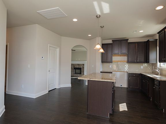 Welcome home to the Victoria. You will love the layout of this design as much as the way it looks on the outside! Greet your guests at the covered front porch and invite them into the happening area of your home. The family room flows seamlessly into the kitchen, which is perfect since we all know everyone loves to congregate in the kitchen and there is plenty of space for them to gather around the island to share stories and create memories. Once the meal is ready you will get to impress them with your skills in your dining room with it's cofferred ceiling which is located just off the kitchen and has an exit onto the covered patio. The ideal location for those days when the meal is prepared outside on the grill! When it's time to retreat you will be comforted in the peacefulness of your master suite upstairs with a trey ceiling and separate sitting area. Indulge yourself to some "me time" in your soaking tub and don't faint when you see the size of your closet, it's huge! The other 2 generous sized bedrooms upstairs have trey ceilings while the bedroom downstairs is perfect for guests with it's own bathroom. You've arrived! Options and upgrades shown in photos may not be included in price.