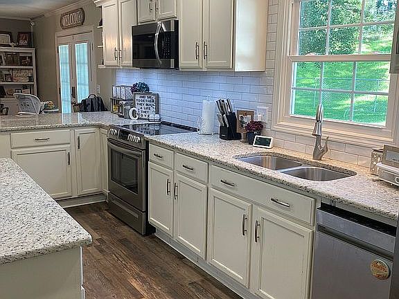 Beautiful 3 bedroom 2 bath split floor plan with large detached garage. The interior has an open concept that is great for entertaining. Kitchen is newly remodeled with granite counters, tile back splash and all SS appliances! Ledford Schools! Updated flooring throughout entire house and many other updated features. Oversized 864 sq foot/2 car garage with work bench, cabinets, window unit AC and wood stove. Pull down steps with full attic over garage. HVAC updated in 2016. Large deck refinished 2020. Fenced in backyard. Ring door bell and security system to remain. Make an offer! Won't last long! 100% USDA eligable.