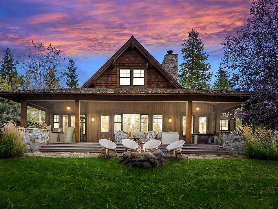 Cabin 3 overlooks the first fairway of the Gozzer Ranch Club Golf Course. It features a spacious main house with 4 bedrooms and 4.5 baths, along with a two-bedroom, two-bath guest suite above the garage. Step inside, and you'll be welcomed by an inviting open floor plan that effortlessly connects the kitchen, dining area, and living room, providing the perfect setting for gatherings and relaxation. As you continue through the home, you'll find yourself drawn to the oversized covered patio, an ideal spot for outdoor enjoyment while taking in the views.. This well-maintained and beautifully furnished cabin offers a generous 4,669 square feet, ready for move-in. Embracing a mountain modern style, this retreat offers a perfect blend of contemporary comfort and rustic charm.