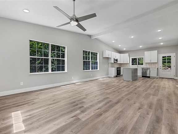 This brand new remodel on a private, wooded lot, is an absolute MUST SEE! The open concept kitchen, breakfast room and living room are adjoined by a huge vaulted ceiling, with 9' foot ceilings throughout the rest of the home! The kitchen has gorgeous, new craftsman style cabinets, a quartz counter top, an island to allow for additional seating and cabinet space and all new appliances! Neutral, brand new luxury vinyl plank flooring has been added throughout the main level, new carpeting in the bedrooms, 5” baseboards, new paint on the main level and in the basement, and all new lighting. The two full bathrooms have been completely remodeled in gorgeous neutral colors! There is a main floor laundry space, upgraded interior and exterior doors throughout, with many new windows, new siding, and new roof! All new HVAC system, electrical, and plumbing throughout! Owner estimates home is 1295sqft, which includes vaulted room addition. You won’t want to miss this beautiful move-in ready home!