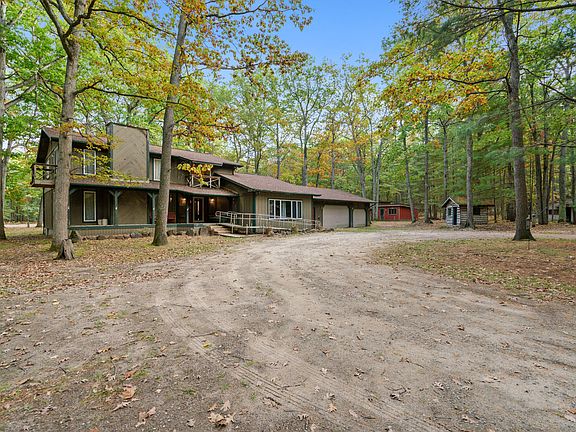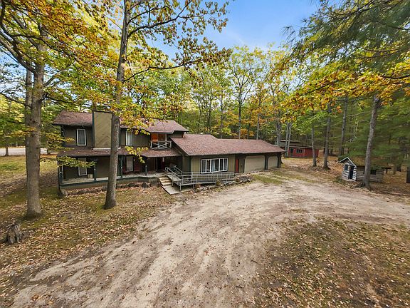 Feel completely secluded, yet only five minutes from town! This nearly 13-acre property offers the best of both worlds—peace, privacy, and convenience. The spacious 4-bedroom, 3-bathroom home features two large living areas, a generous outdoor deck perfect for entertaining or simply enjoying the sounds of nature, and a cozy 3-season porch with electric heat. Thoughtfully designed for accessibility, the home includes a wheelchair-accessible ramp and a power chair lift to the second floor. Equestrian lovers will appreciate the property's history as a former horse facility, with two existing horse stalls and a convenient hand hydrant nearby. Multiple outbuildings provide ample storage and organization for all your gear—including a massive 40'x52' pole building. Explore many private trails that wind throughout the acreage, offering endless adventure right in your own backyard. This property is a rare opportunity to restore and personalize a truly special space.