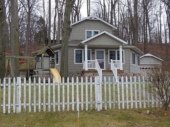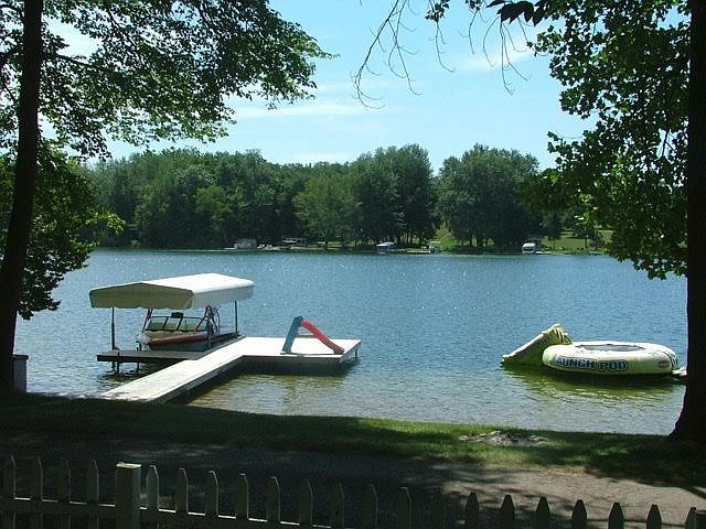 Beautiful and meticulous home on Shafer Lake with 90 feet of sandy beach frontage. Wonderful open floor plan with true hardwood flooring and vaulted ceilings. Master suite on the main level with a private bath. Skylight in the kitchen with a breakfast bar and lots of custom maple cabinets. A fabulous built in buffet hutch in the spacious dining area with tons of windows and a lake view. Two bedrooms up and two bedrooms on the main level. Three full baths all with ceramic tile. Laundry. Full basement. Terrific entertaining space inside and out with a back patio and lovely front porch. Fenced yard and two car garage. Shake vinyl and cobblestone exterior. Fire pit at the waters edge, play set in the yard, sunsets, and awesome sandy swimming area. This is lake living at its best.Very quiet on a road end. Shafer Lake is a less developed, deep lake at 72 feet. All sport inland lake. Winter fun, too, with ski resorts nearby and the state snowmobile trail around the corner. Less than two hours from Chicago and 30 minutes from Kalamazoo. Year-around permanent residence or a fabulous vacation home.