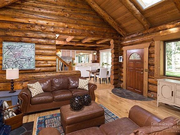 Beautiful log home in sought after Saddleback neighborhood, situated on 2.4 private acres, minutes away from the heart of Bend! With 3 generous bedrooms, a bonus room, a loft & a sunroom, there is room for everyone. Beautiful light & an open floor plan contribute the fabulous flow for living & entertaining. Garage was converted to guest bedrooms & bonus space. Additional storage has been added to property & plans are available for a 20x25 garage & 400sf unfinished room above at a cost of $25K to construct!
