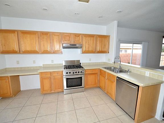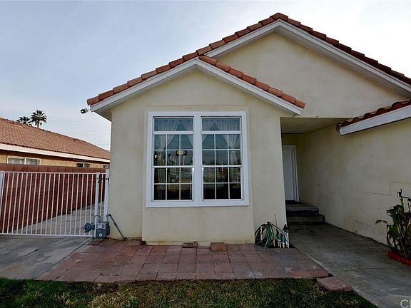 Adorable 4 bedroom, 2 bath home with a very spacious and open floor plan. Huge and spacious living room with high ceiling. Dining area with a sliding door leading to the outside. Huge kitchen with tile flooring, breakfast bar, recessed lighting, stainless steel appliances, lots of cabinet space including computer desk area. Main suite with own bathroom with dual vanity sink, sunken bath, separate shower, walk-in closet and linen closet. All four bedrooms are spacious and open. Hallway bathroom is a full bath with tile flooring. Other features are spacious front door entry with tile flooring, 2 car attached garage with direct access to the house. Laminate flooring. Fully fenced yard with a front gate and spacious side yard. Property is close to shopping, schools, restaurants, golf courses, entertainment and freeways 91, 60 and 15