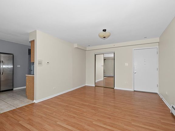 Move right in to this updated 2 bedroom 1 bath condo with in-unit laundry. The large open bright living room with can lights has sliding doors that lead to the balcony with great 4 season views. The well appointed kitchen has plenty of cabinet and counter space. Freshly painted. Modern light fixtures. There is a common laundry room located on the second floor. Building roof 2018. Close to the Metra train, library and shopping.