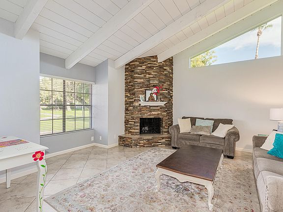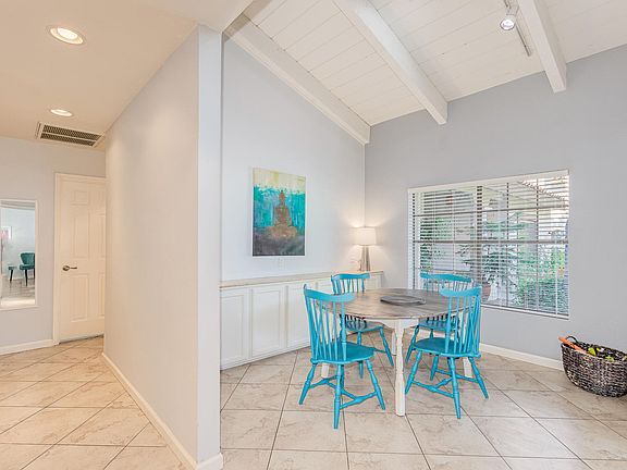 Light, bright, updated 2 bedroom patio home in great location. Fabulous open floorplan with vaulted ceilings, large dining room and family room with wood burning fireplace. Kitchen includes white cabinets and newer stainless steel appliances. Tile flooring throughout and nicely finished bathrooms. Single level with no neighbors above. Attached 2 car garage with cabinets and storage closet. AC units are less than 5 years old. Close to Shopping, Restaurants, Parks and Schools. Easy access to the 101.