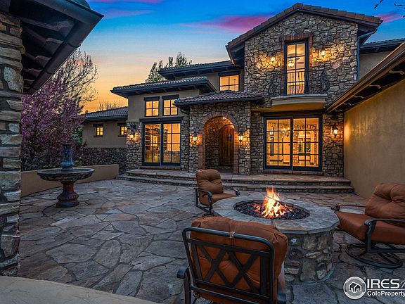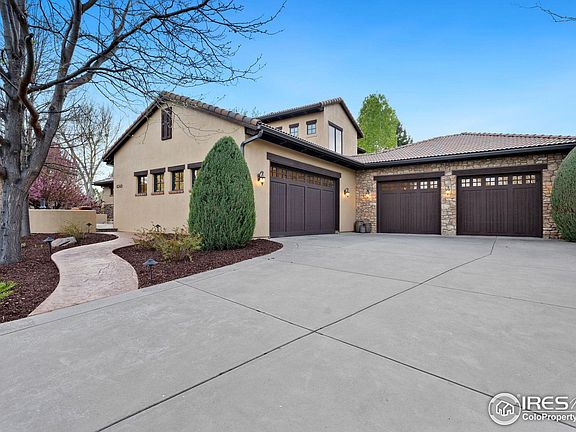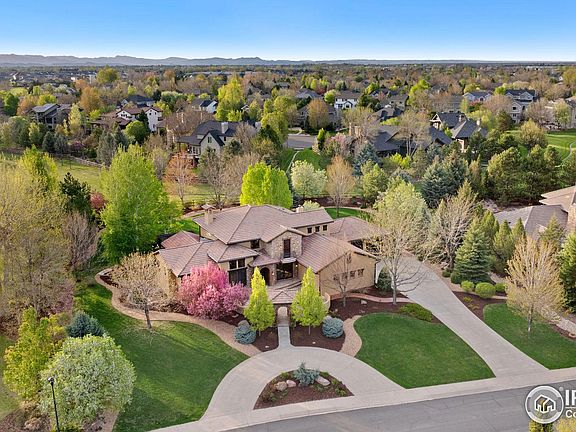 Situated in one of Fort Collins' most desirable locations, this home offers a rare unparalleled 1 acre lot with lake views from the front patio and a private oasis in the backyard. Built by Brannen Construction and Design this home boasts hand hewn wood floors and stone accents along with new wool carpets, new paint and all new LED lighting. The floor plan lives like a spacious ranch with main floor living and a spacious walk-up basement with theater, gym and a 1000 bottle temperature-controlled wine vault. The homeowner also has provided a new $100,000 tile roof, 3 new furnaces and 3 new air conditioning units so the home systems are brand new. The generous kitchen space is home to Wolf and Sub-Zero appliances with a convenient walk-in pantry and many bells & whistles including a filtered water and hot tap. Multiple eating areas with a breakfast and formal dining space plus a handsome private office overlooking the front courtyard and tiered fountain. The bedrooms all offer ensuite bathrooms and spacious closets while the primary retreat is inviting and has its own private access to the backyard. This magnificent home backs to a generous green belt with mature landscaping, offers the utmost in privacy and includes a built-in backyard Wolf grilling station. An added bonus is the over 1500 sqft 4 car garage, which offers plenty of space for vehicles and all the Colorado toys.The sound of the backyard cascading waterfall throughout the many living spaces is the ultimate cherry on top of this estate! This home is a rare offering and one that is not to be missed.