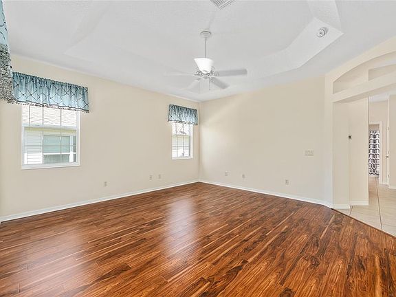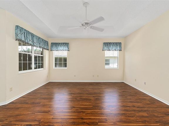 Ready to go 3/2 Camden in desirable Village of Amelia. ROOF 2024 HVAC 2023 HWH 2023 Features include beautiful engineered hardwood flooring, open kitchen with white cabinetry, pull-outs and pantry closet. Enclosed lanai lets you enjoy the Florida sunshine or gives you additional living space -- make it what you need! The primary bedroom offers a tray ceiling and spacious closet. Ensuite bath with dual sinks, walk-in Roman shower, toilet and linen closets. The split bedroom plan provides privacy for your guests. These bedrooms have newer carpet and share a convenient bath with tiled tub/shower combo. Rounding out the positives are an inside laundry room, patio for grilling, attic solar fan with extra insulation, roomy 2 car garage, tastefully stamped driveway and a location you can't beat. Close to Village of Amelia pool and mailboxes, Bacall and Bogart Executive Golf Course and the O'Dell Recreation Center. Minutes from all the fun of Lake Sumter Landing and Brownwood Paddock Square plus shopping, dining, medical and more. Make sure to VIEW THE VIRTUAL TOUR!