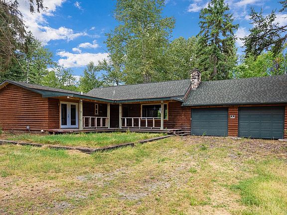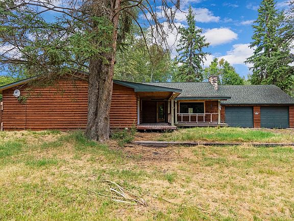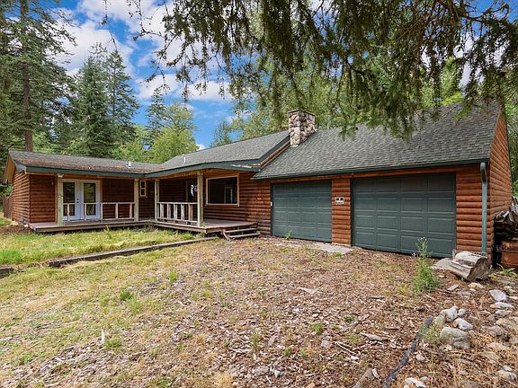 Set within a stunning landscape, this property covers around 2.16 acres and features a delightful 1716 sq ft log-style home. The house includes 2 beautifully designed bedrooms and 2 bathrooms. The interiors showcase upgraded tile and wood flooring, matching modern appliances, solid countertops, and alder cabinetry. The residence also has a spacious laundry area adjacent to the bedrooms and a generous master suite with an upgraded bathroom featuring a new shower/tub combo and barn doors. Additional amenities include a 2-car attached garage, well and septic systems, and a creek running through the property. The charming front porch offers breathtaking mountain and tree views. Inside, the open floor plan, cozy wood-burning fireplace, vaulted wood-planked ceilings, and large windows ensure ample natural light, creating a warm and inviting atmosphere. Hurry this will not last!
