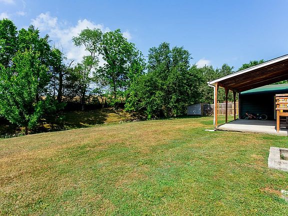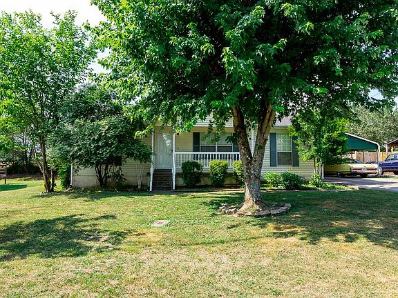 Spacious great room with fireplace, vaulted ceiling, with exposed beam, eat-in kitchen, hardwood floors, cover front porch and patio, and covered carport