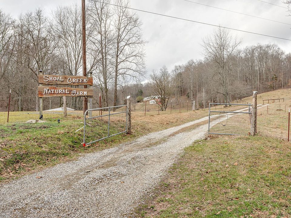 NO SHOWINGS UNTIL FURTHER NOTICE! Private, sustainable farm with many amenities! Over 700 ft of frontage on Shoal Creek for fishing, kayaking and recreation. Stocked pond and several springs, fruit trees and vineyard. Hiking & riding trails throughout. Fenced and cross-fenced for horses, cows, sheep, goats, etc. Several outbuildings, organic gardens. Comfortable spacious home with large deck overlooking the valley. Just south of Lawrenceburg and only 35 min to Florence.