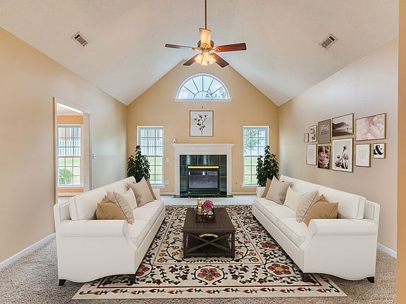 - Interior Features: Smoke Alarm, Washer/Dryer Connection, Ceiling Fan(s), Walk-in Closet(s), Fireplace, Sunroom, Cathedral Ceiling(s), Cable Available, Bedroom on 1st Floor, Security System, Master Bedroom Downstairs, Air Conditioned, 4th Bedroom, Solid Surface Counters