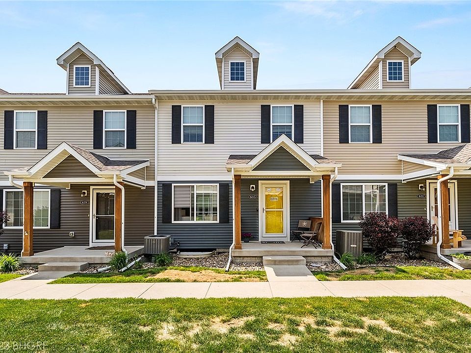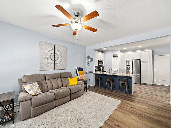 Townhome living with a little extra! This home had a complete kitchen remodel, w/custom cabinets, a deeper granite counter w/room for bar seating and a SS apron sink. All of this opens to the living room w/electric fireplace and a space for your TV over the mantel. All new LVP on the main floor and new vanity in the half bath. A barn door leads downstairs to a finished space with an egress window, giving the flexibility to use as you see fit. There is additional unfinished space for storage, and is also plumbed for a future bathroom. Up on the second story is a spacious master suite, two additional bedrooms, a full bathroom, and a roomy laundry room. Enjoy your coffee on the covered front porch, or relax w/shaded seating in the magnetic screened-in garage. Worry-free living with the association taking care of the lawn, snow removal, and internet. Relax at home w/new HVAC and a 1-year home warranty. Come enjoy the community pool, playground, local park, and friendly neighbors.