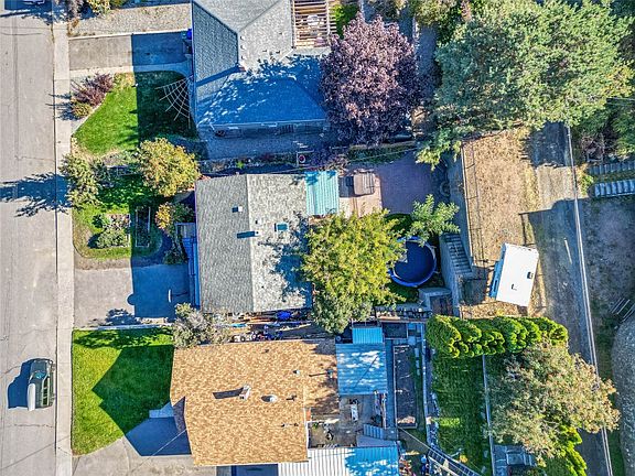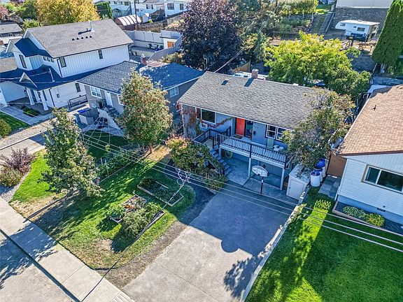 This charming downtown bungalow blends classic character with thoughtful updates inside and out. The main floor features two bright bedrooms, original hardwood, and a welcoming living/dining area with timeless arched doorways. The custom Kitchen Craft kitchen (2022) offers modern cabinetry, tiled backsplash, and newer stainless appliances, while the 4 piece bathroom keeps the vintage charm. Downstairs provides two additional bedrooms and flexible space for a family room, plus laundry and storage with direct exterior access. Key upgrades include hot water tank, central A/C, and vinyl windows. Outside, enjoy a fully fenced yard with low-maintenance landscaping, covered patio, hot tub, and RV/boat parking via the back lane. Located on a quiet street just steps from parks, schools, and downtown amenities — the perfect mix of comfort, location, and value.