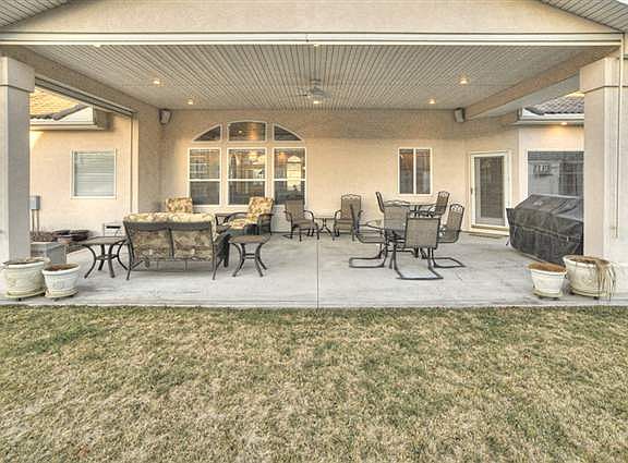 Large Kitchen with Island. Spacious Master bedroom and Master bath that included large jetted bathtub. 4th Bedroom is an office right now. Colossal (17 x 30) cov. patio with retractable shades, a great space for entertaining. Includes small outdoor shed and a pad with attachments for a jacuzzi.