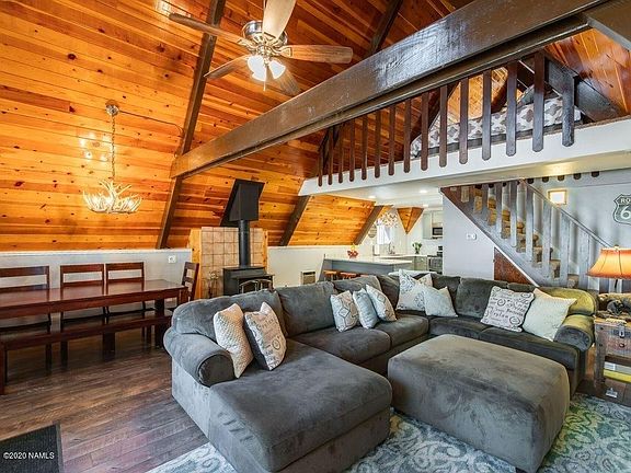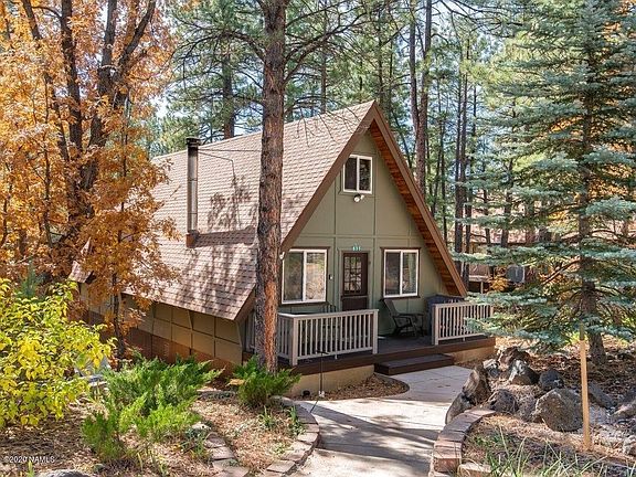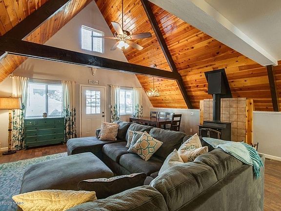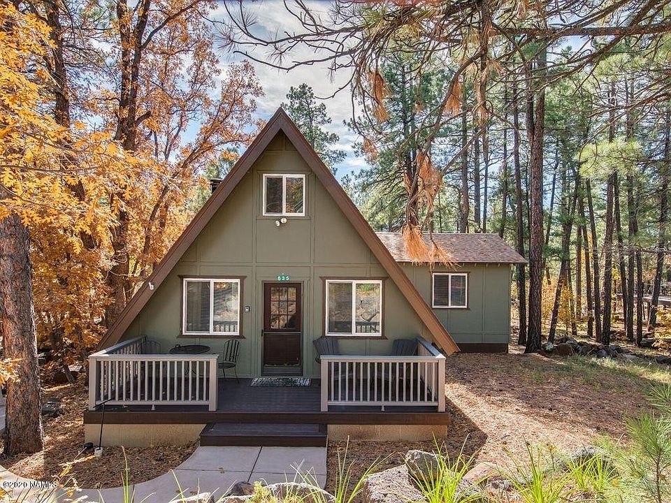 Welcome to this GORGEOUS remodeled A-frame nestled in the beautiful Ponderosa Pines!!! This amazing cabin offers a bright open spacious great room with soaring vaulted ceilings, stunning wood & beam detail & charming wood burning stove gives this space so much elegance and character! Enjoy cooking in this completely renovated kitchen with modern design and functionality, stainless steel appliances, pantry and plenty of cabinet space! 2 spacious bedrooms and bathrooms on the main level and HUGE loft upstairs! Enjoy the amazing outdoors on the magnificent deck that backs to the beautiful creek. This home is situated on over a 10k sq ft large lot offers a single car garage and large paved driveway. Come see this cozy cabin before its gone!