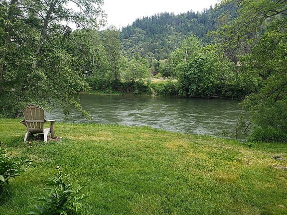Immaculate River Front Home! on 0.42 acres of mature landscaping, lawn runs from home all the way to the Rogue Rivers edge. Home features newly remodeled kitchen with quartz counter tops, nice cabinets, flooring and appliances feature natural gas range/oven combo. Dual pane wooden windows. natural gas wood stove. This is a must see home to many features to list. Attached one car garage, vinyl Pickett fencing and off street parking.