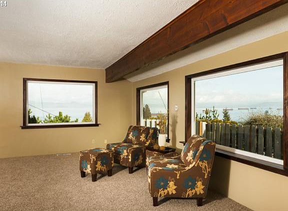 Columbia River View Property. Relax in the living room and watch the ship traffic. Fresh exterior & interior paint, new carpet and new laminate flooring. The 2nd story offers 1 large bedroom and a flex space that could easily be configured into a 3rd bedroom, office or play room.