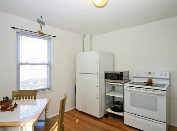 Adorable Brick Cape across from the Firehouse , Freshly Painted 3 bedroom 1 bath , open carpeted room on 2nd floor could be 2 bedrooms ,office den or bonus room , ( no doors ) updated kitchen , 2 bedrooms on first floor with 1 bath & hardwood floors, Central Air , Gas Heat. 1 small car detached Garage . Exterior in the process of being cleaned up from previous tenant. Conveniently located near transportation, shopping, restaurants, gym, train station, movie theaters etc. Full basement with laundry and storage. Tenant responsible for Lawn , Snow , Gas, Electric & Water One year lease .1st Month Rent 2 Months security