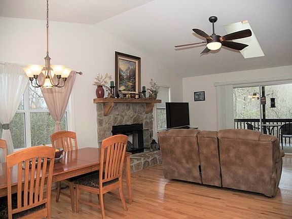 Very nice 3/2 in desirable Laurel Ridge subdivision.Laurel Ridge is a nice, quiet neighborhood with Community Watch. This home has an open floor plan that features hardwood floors, ceramic tile, rock gas-log fireplace, vaulted ceiling, stainless appliances, skylights in the kitchen and living room that allow extra natural light in, large master with large walk-in closet, master bath has double sink vanity. Large deck with plenty of privacy. Downstairs has a family room, two bedrooms and bath with front-loader washer and dryer. There is also a patio off the lower level with its own large deck and hot tub! Nicely landscaped lawn with minimal upkeep needed and a storage shed. 2 year old roof, 1 year old water heater, 3 year old central heat and air that does have a transferable extended warranty. There is also a small stream on the property!