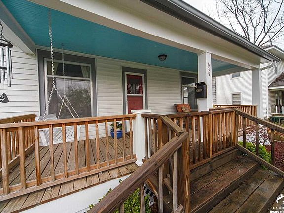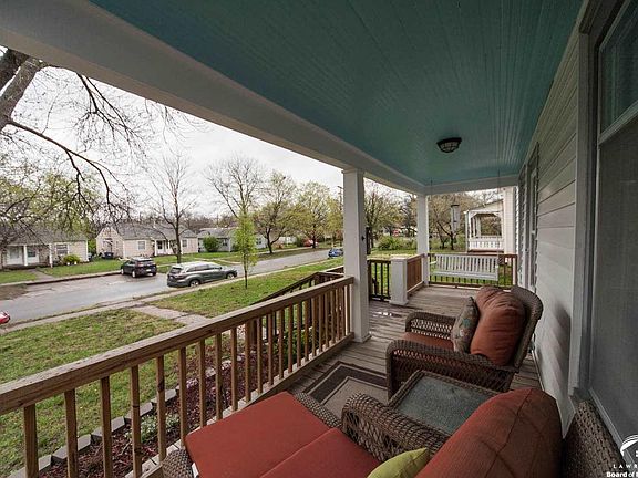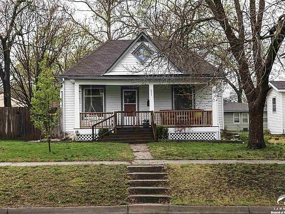 Explore the simple lines and hardwood floors throughout while natural light surrounds you in this charming airplane bungalow. Custom-designed renovated kitchen includes gleaming maple cabinets and GE appliances. Feel right at home nestled in this unique historical Old West Lawrence neighborhood. Enjoy short walks to schools, downtown entertainment, or KU events. A beautiful covered front porch and shade-rich back deck are ripe for entertaining guests. Welcome to a gem in Lawrence history.
