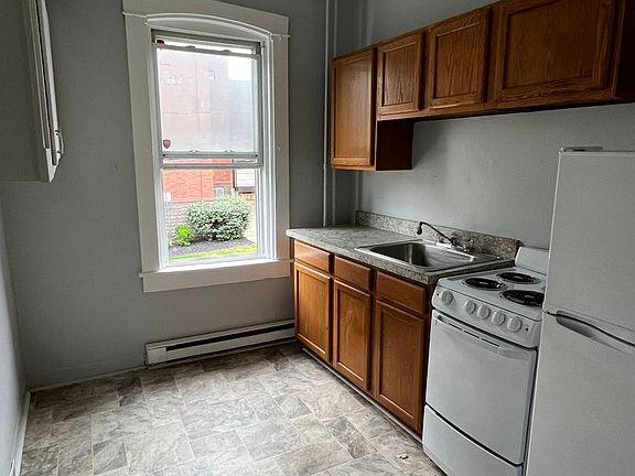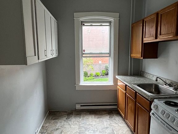 This apartment has a significant amount of cabinet space in the kitchen, fresh paint and flooring, and has windows all throughout!