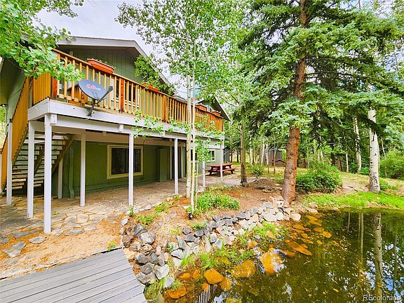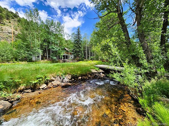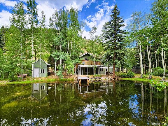 Stunning creekside retreat with pond in-between historic Idaho Springs & Georgetown Colorado! This property is private and quiet yet only 3 minutes to I-70. Rushing Mill Creek runs through the backyard and you have your own private pond to relax next to or fish. This property has a full guest suite with separate entrance for rental income, vacationing guests or extended family. As you walk into this home, you will be welcomed by the natural light, soaring ceilings, gleaming wood floors and a cozy fireplace. The floorplan is open with the kitchen, dining room and living room all flowing together. The kitchen is great for entertaining and opens to the large deck overlooking the valley. It features stainless appliances, granite counters and custom tile throughout. The great room has soaring tongue & groove ceilings and tall windows to bring in the beautiful scenery. You can entertain in style on the deck or lower patio while guests mingle. There is a small dock on the pond and a bridge over the creek for relaxing or fishing. The guest suite has 3 bedrooms and a large living room that opens to the patio and pond. It has a large custom kitchen with new cabinets, farm sink, stainless appliances, tile backsplash and granite counters. The guest suite bath is all remodeled with a stunning walk-in tile shower and custom vanity. There are 3 sheds for all your gear and there is room to build a garage for all the toys. This home is all about the Colorado lifestyle and is the perfect basecamp to take advantage of all thing outdoors. Enjoy historic mountain towns, unique shops, bistros, brew pubs, distilleries, casinos, rafting, mountain biking, zip lines and more! 25 min to skiing, 30 min to the Metro area, 45 minutes to Lake Dillon, 1 hr to DIA, 1.5 hours of multiple world class ski areas. Short term rentals are allowed. Water rights to fill the pond. Schedule your tour today.