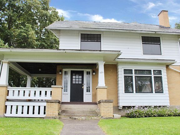 Appealing 2 story home w/ brick work and siding combination with custom craftsmanship inside and out. An open foyer leads to a living room w/hardwood floors, fireplace and built-in shelves, and continues into the dining room which offers an entire wall of built-in storage. The kitchen is a blank slate and ready to finish. The once walk-in pantry is gutted, and waiting for your design. The second floor offers a pocket door at stairway to close off, a wide hallway which leads to 3 large bedrooms, a full bath, an enclosed porch, and access to the full walk-up attic. The basement is partially finished. The large level lot offers a nice covered porch, patio, and extended two car detached garage. You will be charmed by the original character in this house. Conventional rehab loans or Cash only. Sold "as-is", proof of funds required.