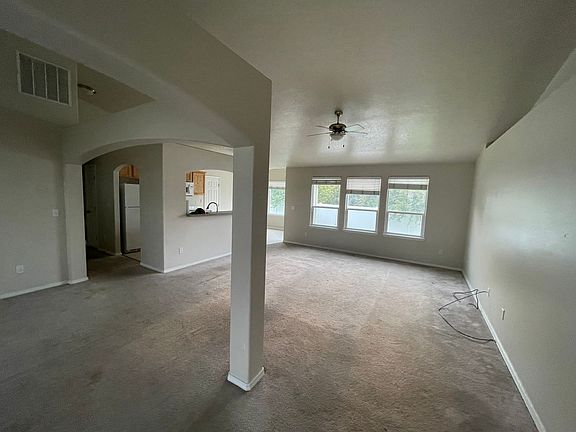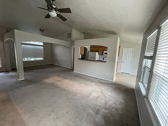 Don't let this classic looking front porch fool you, this three bedroom two bath home has all the comforts your are looking for. Starting with vaulted ceilings in the open living area. This split floor plan has the perfect master retreat with walk in closet and separate tub shower in the large master bathroom. The galley style kitchen is open to the living area for continual connection with your guest when entertaining and great views of your beautiful back yard. There is also a large laundry room attached to the two car garage entry with folding counter. This peaceful Kuna neighborhood has a community Frisbee golf course just outside the front door of this property. Near by Schools are, Kuna High School, Fremont Middle School, and Hubbard Elementary School. Small dog upon approval with $200.00 non refundable pet fee.