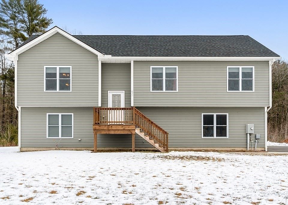 Exquisitely designed, energy efficient home is sure to impress! Minutes away from the center of town & the I-90 Pike, this 2018 custom-built home sits on 2 acres, has approx. 1400 sq ft of living space in the main level & an addt'l 440 sq ft bonus room in the lower level. Immediate wow factor upon entry to find a spacious open floor concept, cathedral ceilings, gleaming wood floors, natural lighting coupled with recessed lighting and chandeliers. Get inspired in the kitchen designed to cook/bake, host & gather. Here you'll find stylish two-toned cabinetry, stainless steel appliances, subway tile backsplash & granite countertops. The gorgeous granite island offers ample prep space, cabinet storage & counter stool seating. The dining area has a slider that leads to the wood deck & what a yard! Wooded surroundings offer a feeling of seclusion & serenity. Convenient main-level laundry, large, modern bathrooms, owner's suite with walk-in closet, oversized 2 car garage, so much to enjoy!